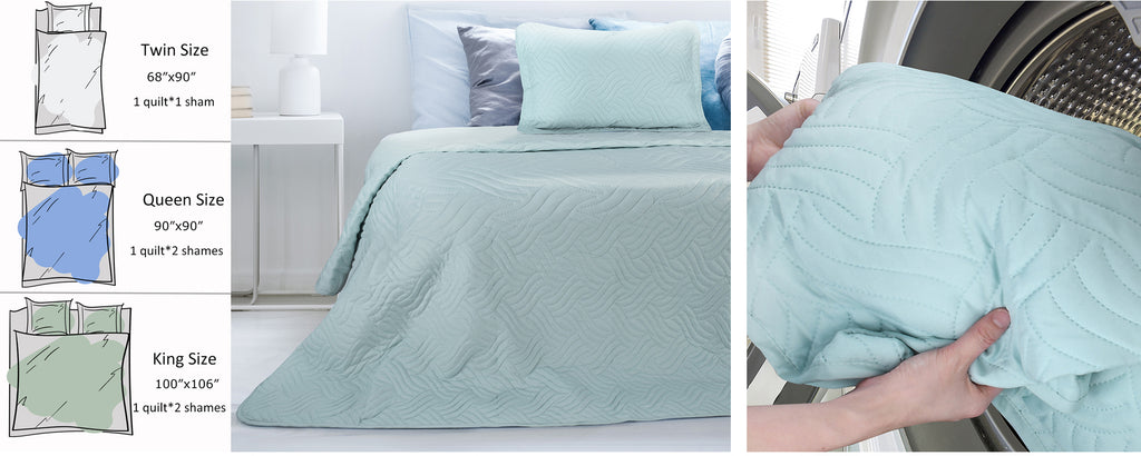 With Catalonia quilts, you have multiple sizes to pick from. You can choose the 100x106 inches King size, that is a 3 piece quilt set that comes accompanied with a quilt and two shams that are each 20x26 inches in size.