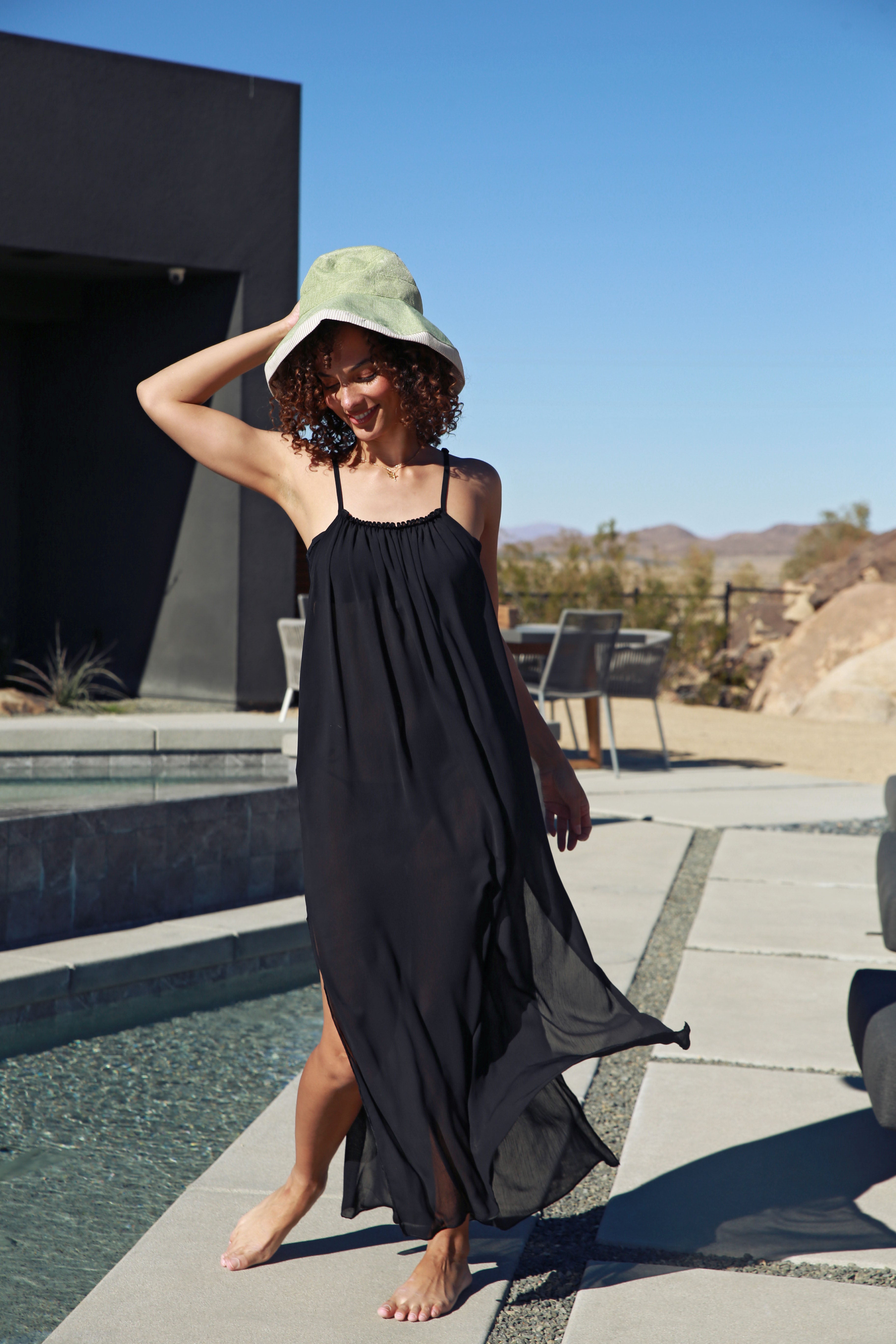 It is another sheer cover up made of chiffon to provide a high level of comfort. Nude beige, black, and olive tone is preferable for those who love neutral shades. But there is also a bright red tone for those who love bold colors. The cover up has a sleeveless design with narrow straps.
