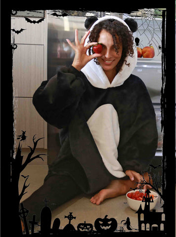 This adorable giant panda hoodie is perfect for an ultra-cute Halloween costume, and you won't have to worry about your little one catching a cold either. The black material is a warm and soft microfleece material, just like the brown bear. Paint some black panda eyes on your face to complete your look and you're sure to win any costume contest!