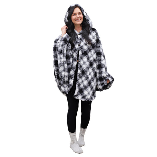 Plaid Sherpa Wearable Blanket Cape With Hood
